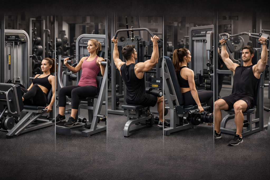 This four-week machine-based plan supports complete beginners who want a physical fitness routine for beginners that builds confidence while protecting joints, posture, and progress. Machines offer controlled movement and a predictable learning curve, which helps new gym-goers focus on steady improvement.